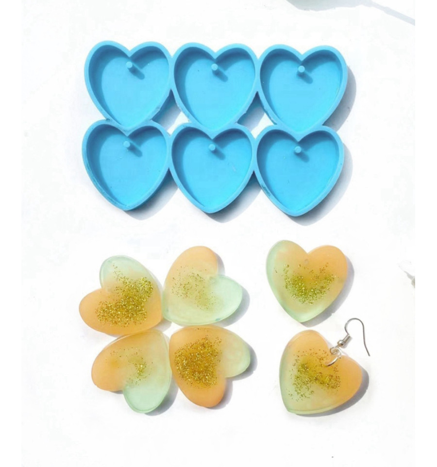 Moule pendentif coeur droit en résine (6 coeurs)