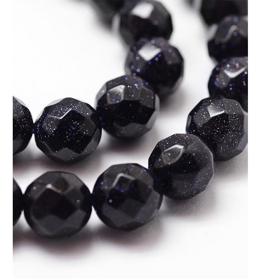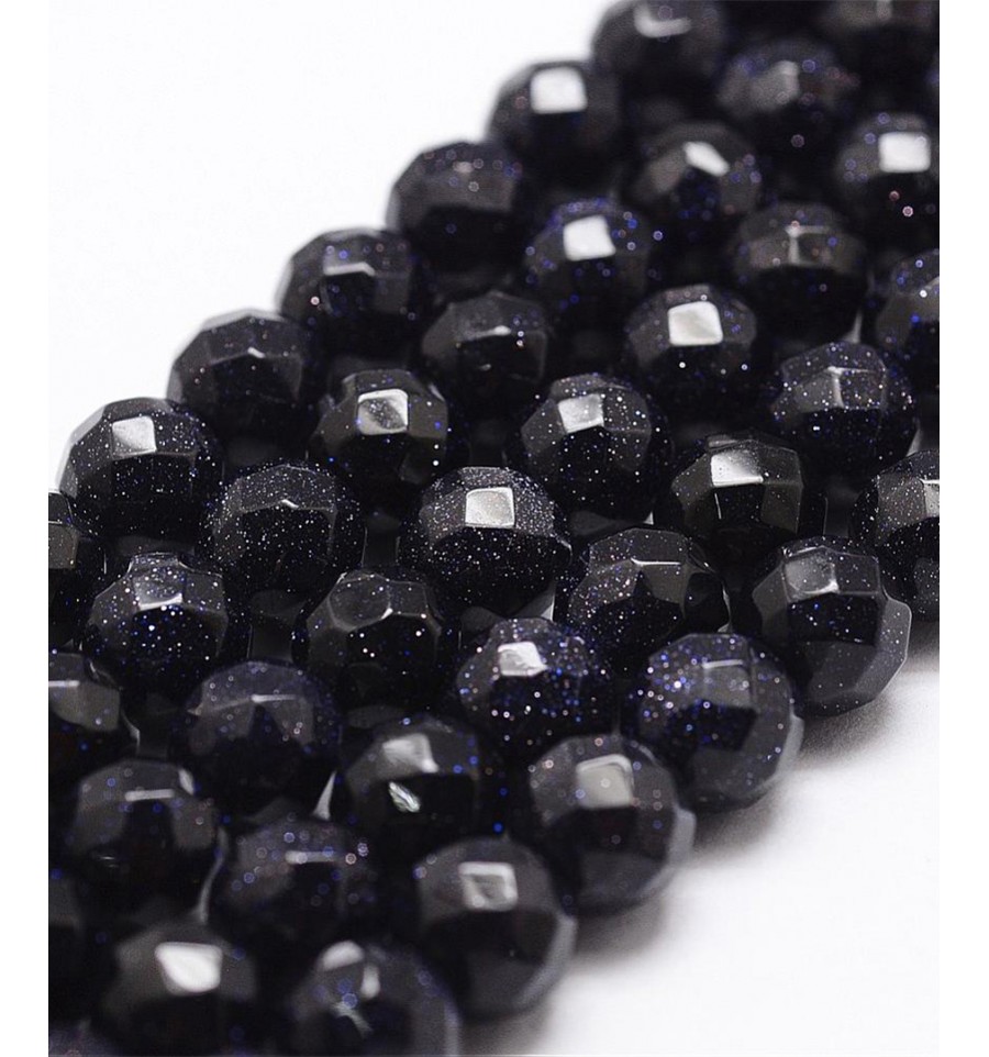 8mm - gold stone bleu synth. - Chapelet pierre facette