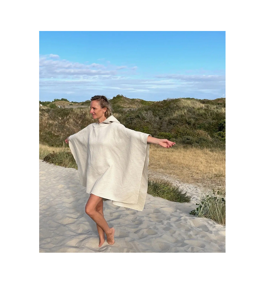 Le poncho est rapide à réaliser, hyper pratique toute saison, il peut être aussi bien sortie de bain que cape de pluie. Originaire d’Amérique du Sud, le poncho avait pour utilité de se protéger de l’humidité et du froid en restant libre de ses mouvements.