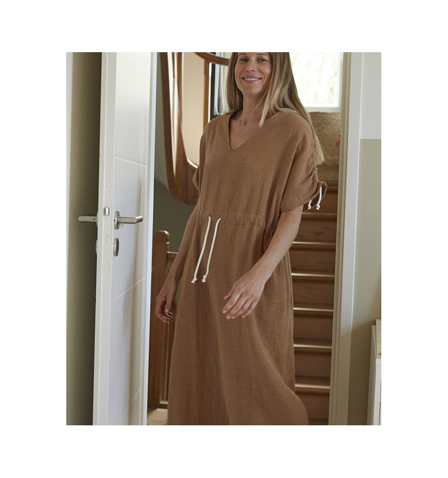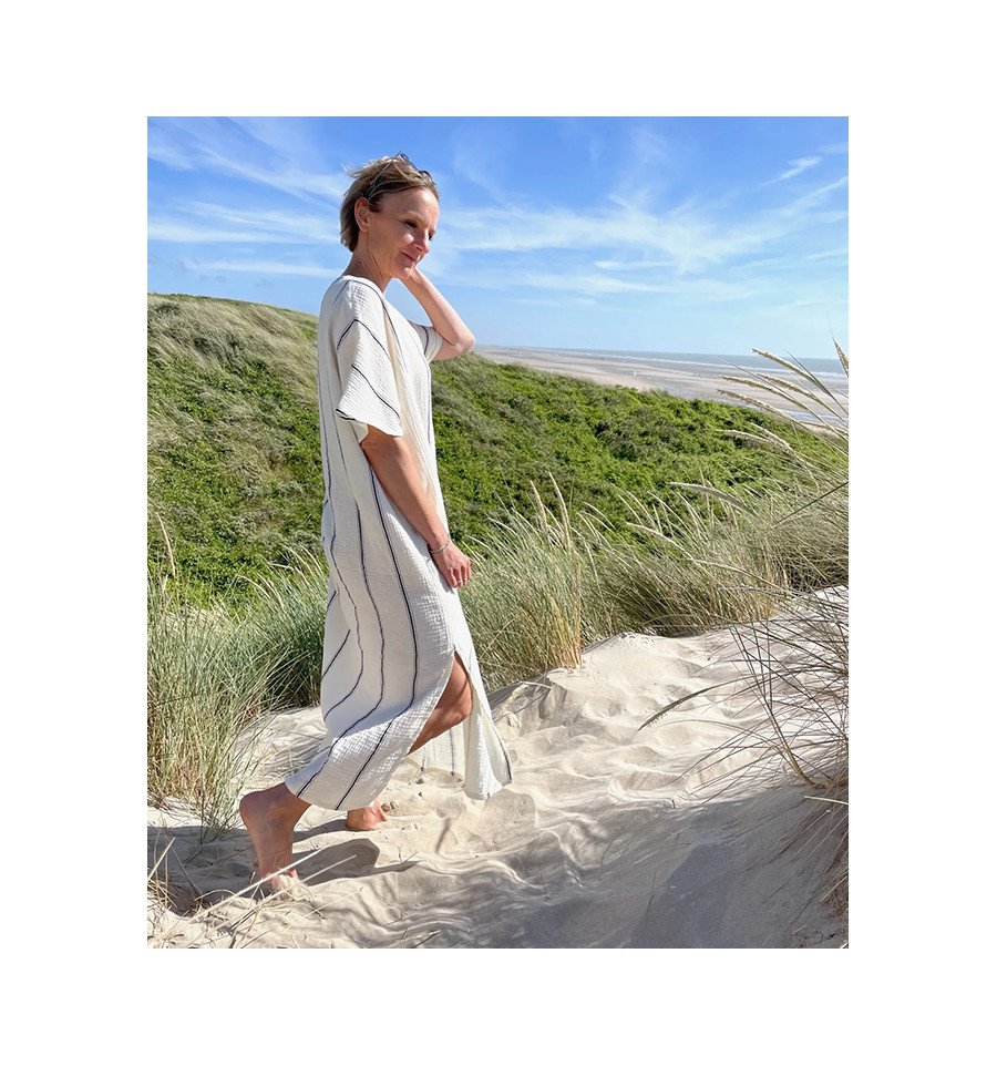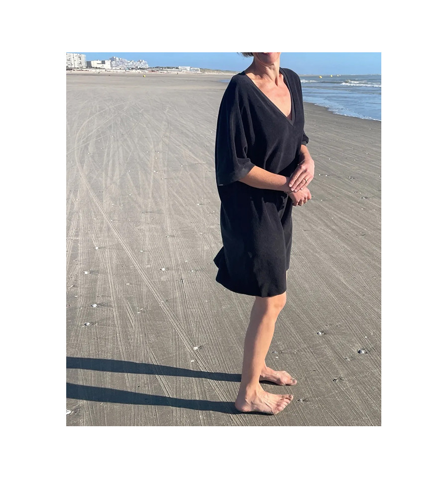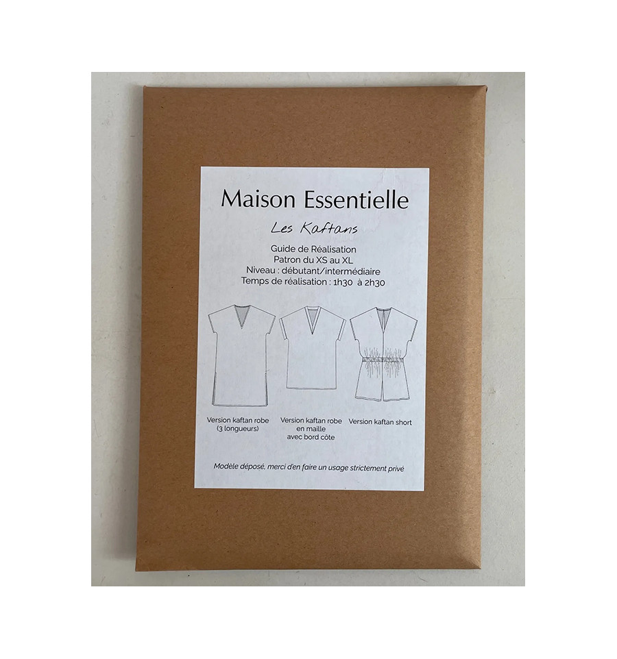 Métrage Tissu laize 140 cm – version robe genoux 1,90m / version robe longue + poches/passants : 2,54 m / version kaftanshort : 1,80 m / version kaftan robe maille 1,77m + bord côte 25 cm (laize 70 cm) / version cape : 1,7m / version kaftan robe longue avec coulisses 3 m