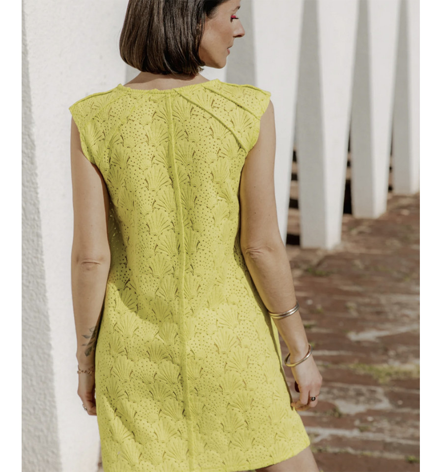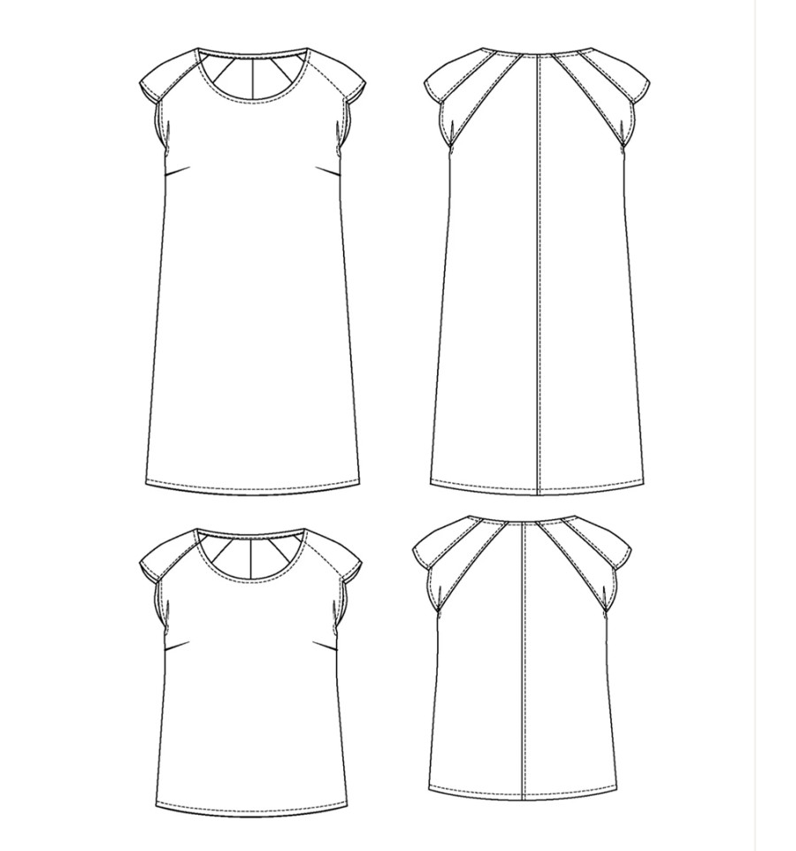 Ligne trapèze et encolure arrondie, DAÏQUIRI sera la parfaite petite robe à enfiler pour jouer les élégantes en été. Les épaules soulignées par les jeux d’empiècements et de découpes sont la signature de ce joli patron, qui se décline également en blouse. Tout est pensé pour une cousette impeccable jusque dans les moindres détails: le montage est en couture anglaise, les finitions d’emmanchures sont avec une pièce propreté et la finition d’encolure se fait au choix avec une propreté ou un biais.