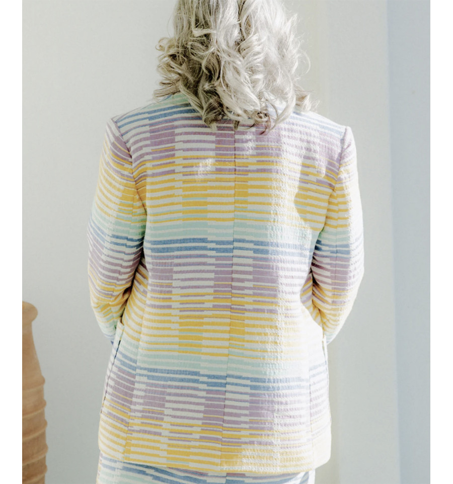 Niveau de couture : INTERMÉDIAIRE Les points techniques sont coudre des pinces, coudre un col châle, plaquer des poches, réaliser une fausse poche passepoilée, monter des épaulettes et assembler une doublure.