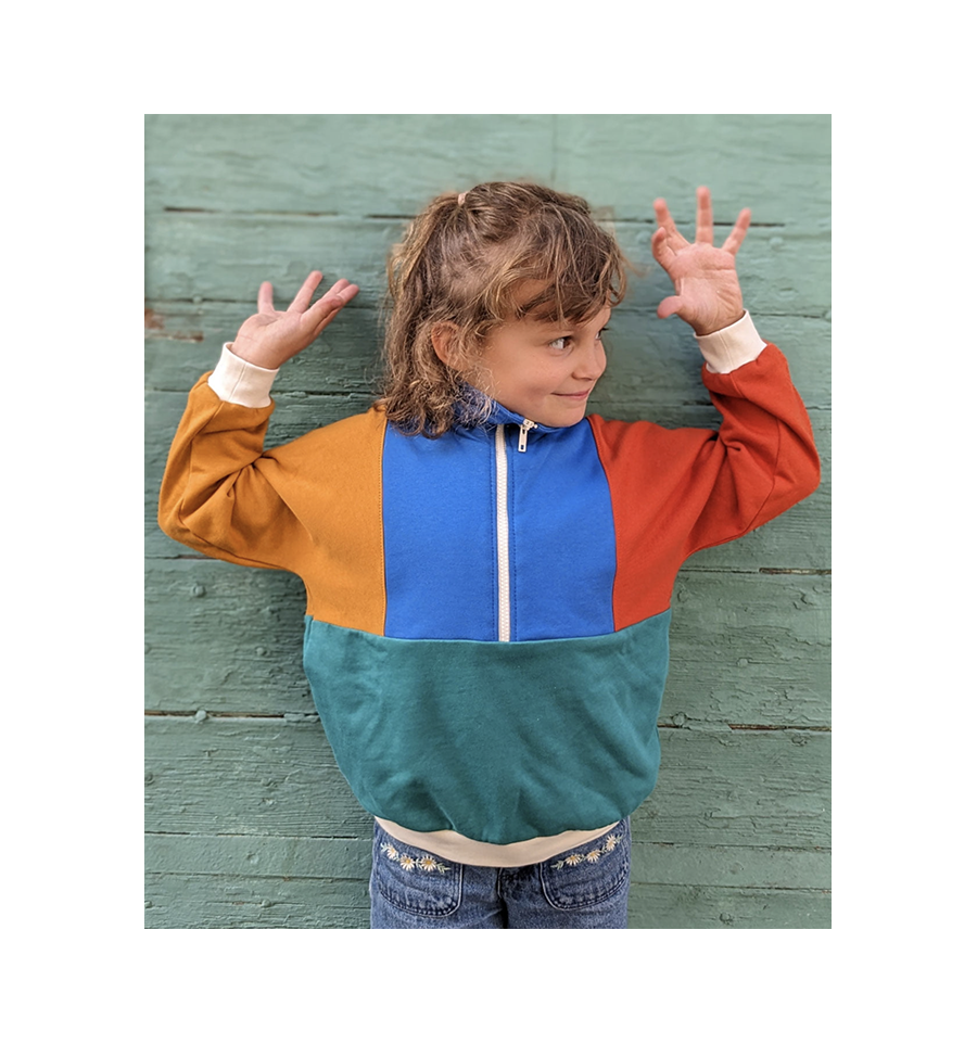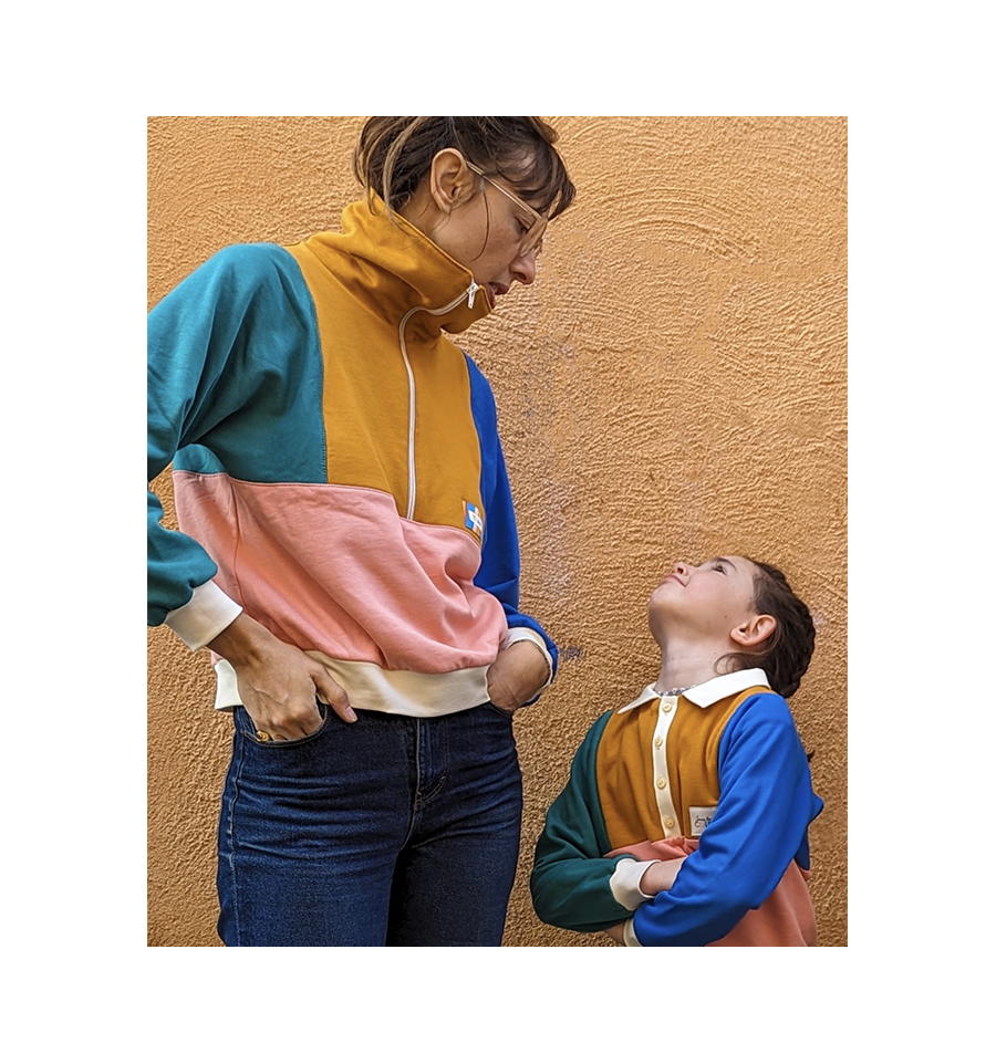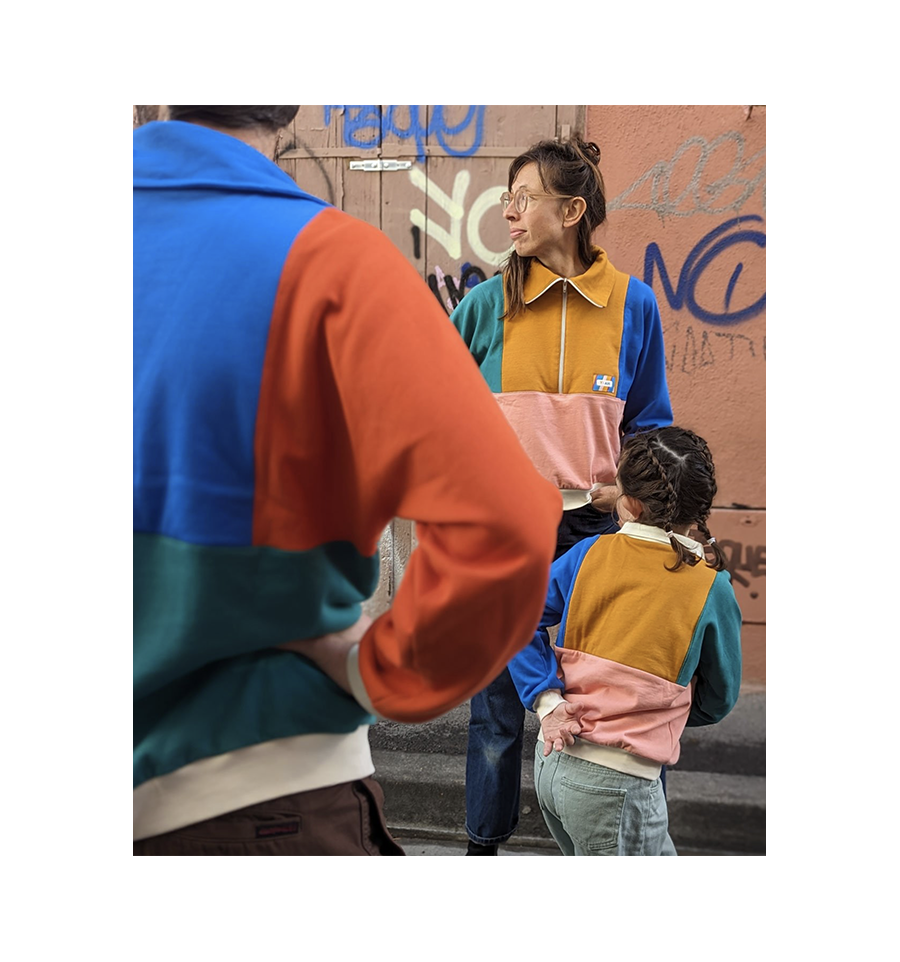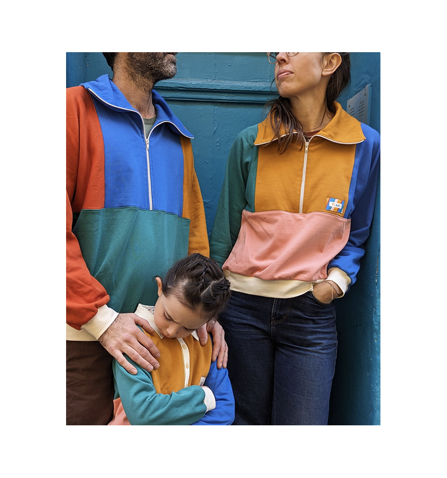 Atlas est un patron de sweat mixte au look rétro pour toute la famille réalisable en version col camionneur ou col chemisier avec pattes de boutonnage pour un look so 80’s.