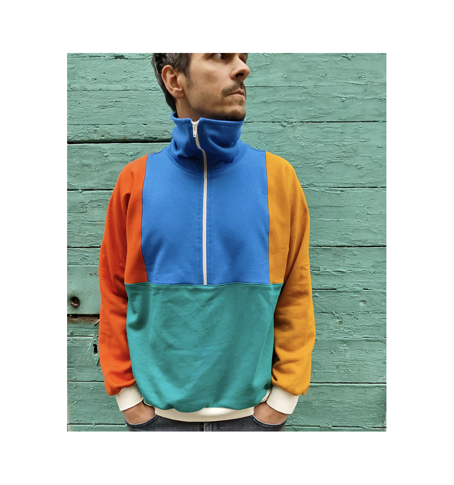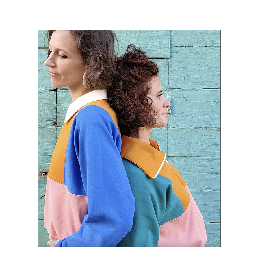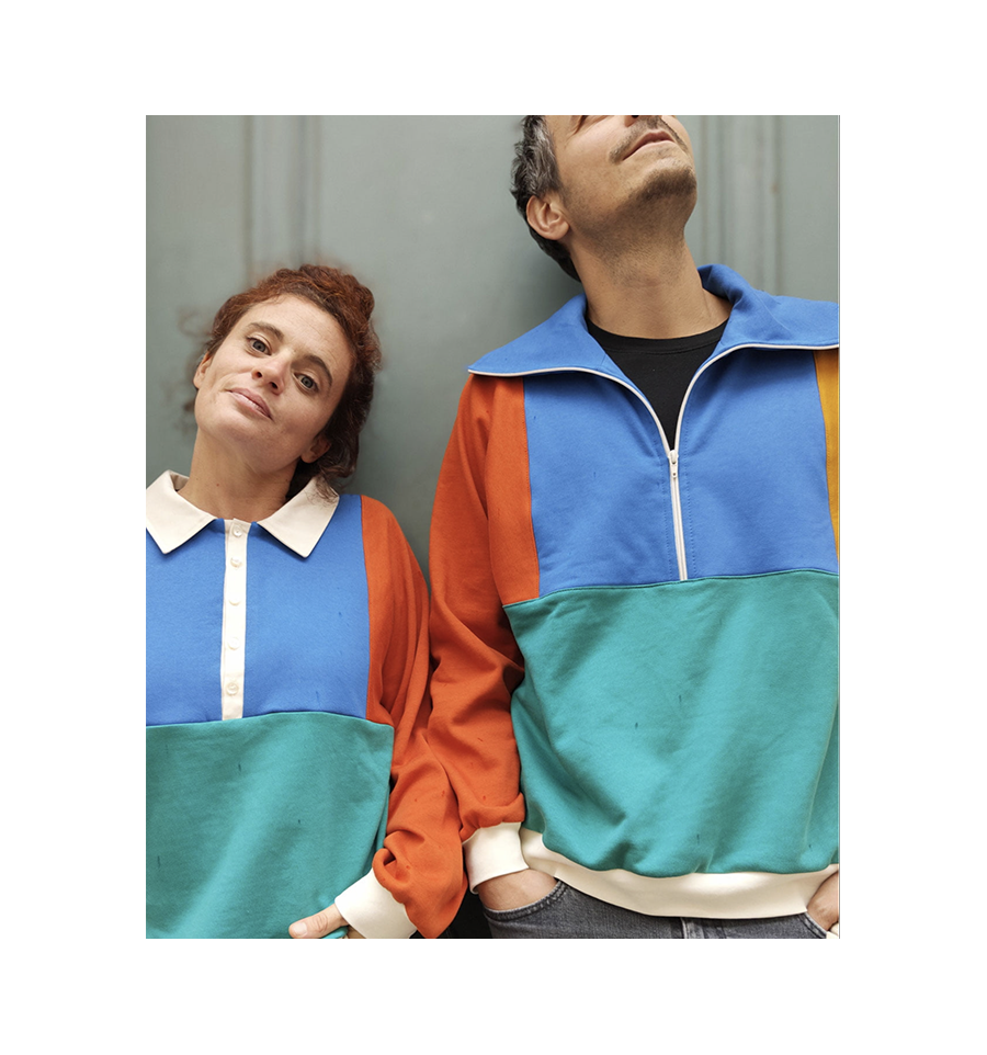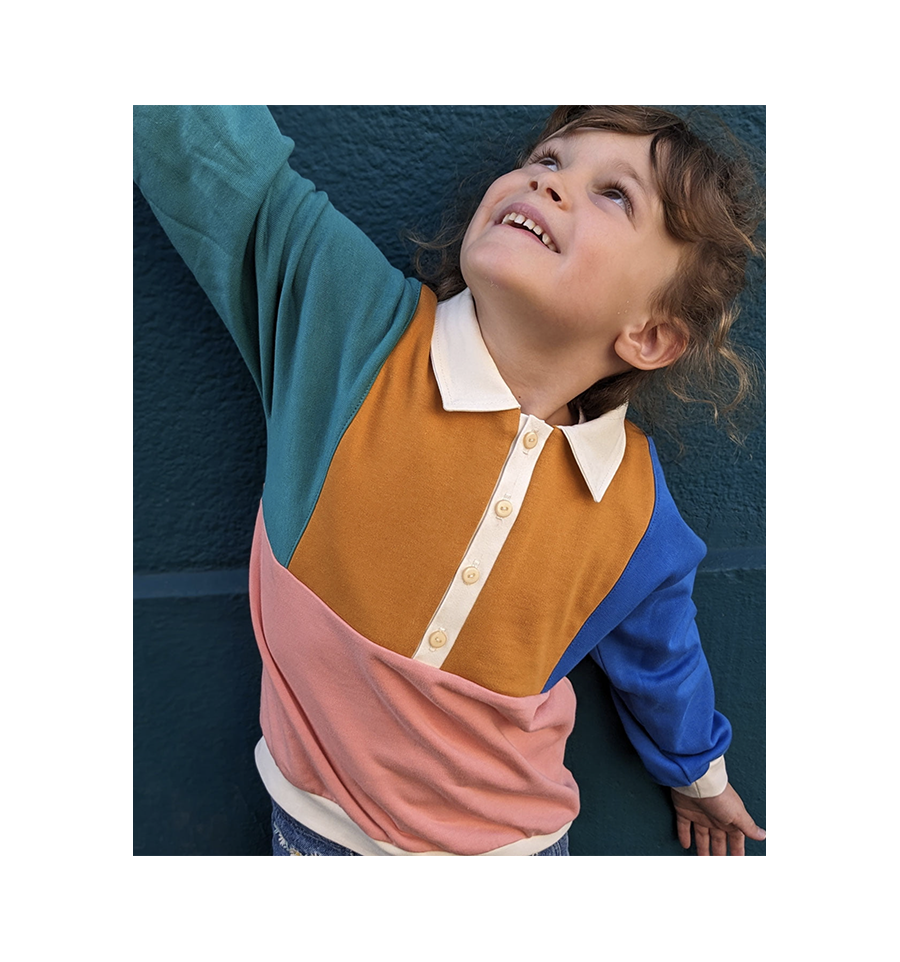 Atlas est un patron de sweat mixte au look rétro pour toute la famille réalisable en version col camionneur ou col chemisier avec pattes de boutonnage pour un look so 80’s.