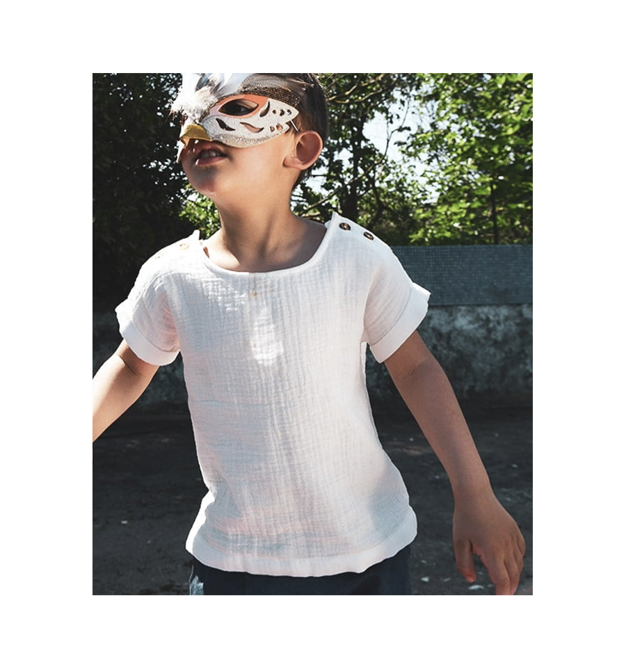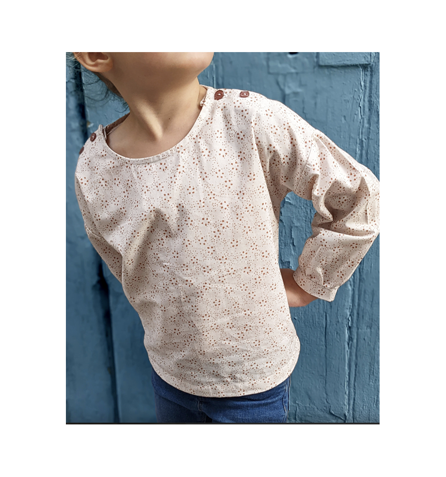 Alouette est un patron de blouse mixte à réaliser pour les enfants du 6 mois au 12 ans.