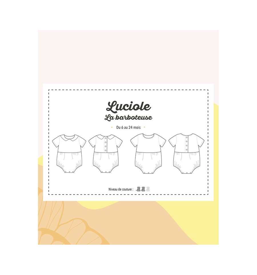 Ce patron de couture est un incontournable de la garde-robe des bébés dans lequel ils seront à l’aise et si craquants avec leurs gambettes à l’air. Luciole propose un bloomer ample, de petites manches courtes, une patte de boutonnage dans le dos et un col plaqué optionnel à ajouter selon le look souhaité. Avec son gousset à pressions à l’entrejambe, c’est un modèle pratique pour le quotidien.