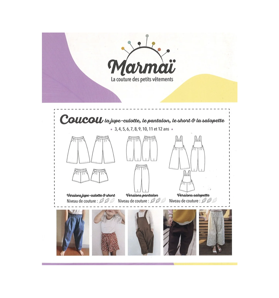 Coucou c’est un patron enfant mixte et multi-saisons proposant plus de 6 déclinaisons, faisant de lui un véritable couteau-suisse à avoir dans sa patronthèque. Short, pantalon, jupe-culotte, avec ou sans bavette, ceinture simple ou paper-bag, ce petit modèle s’adaptera aux plus petits comme aux plus grands et garantira un maximum de style et de confort. Côté couture, il est accessible aux plus débutants.