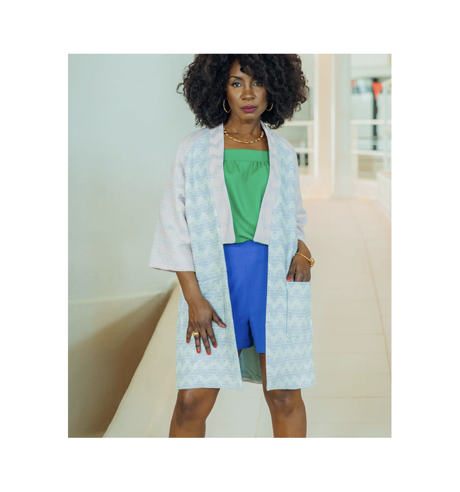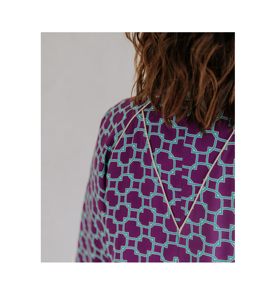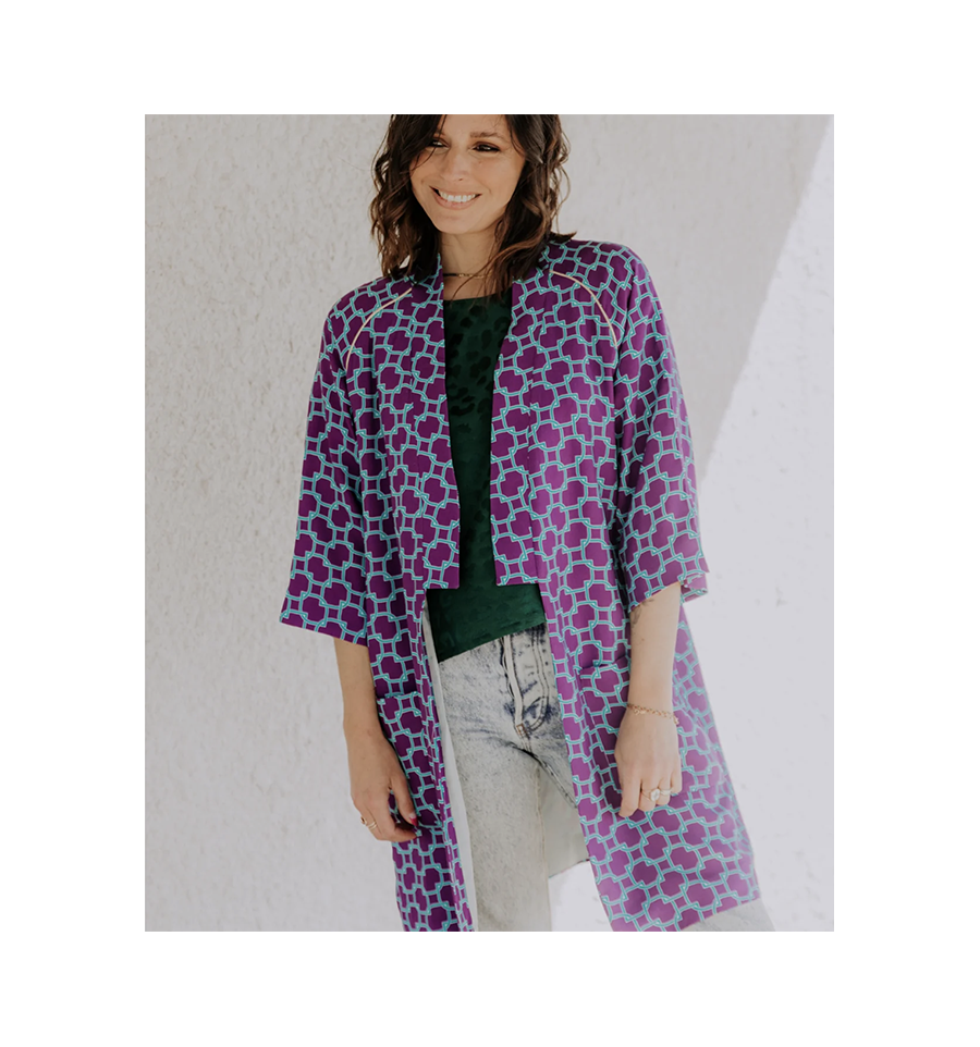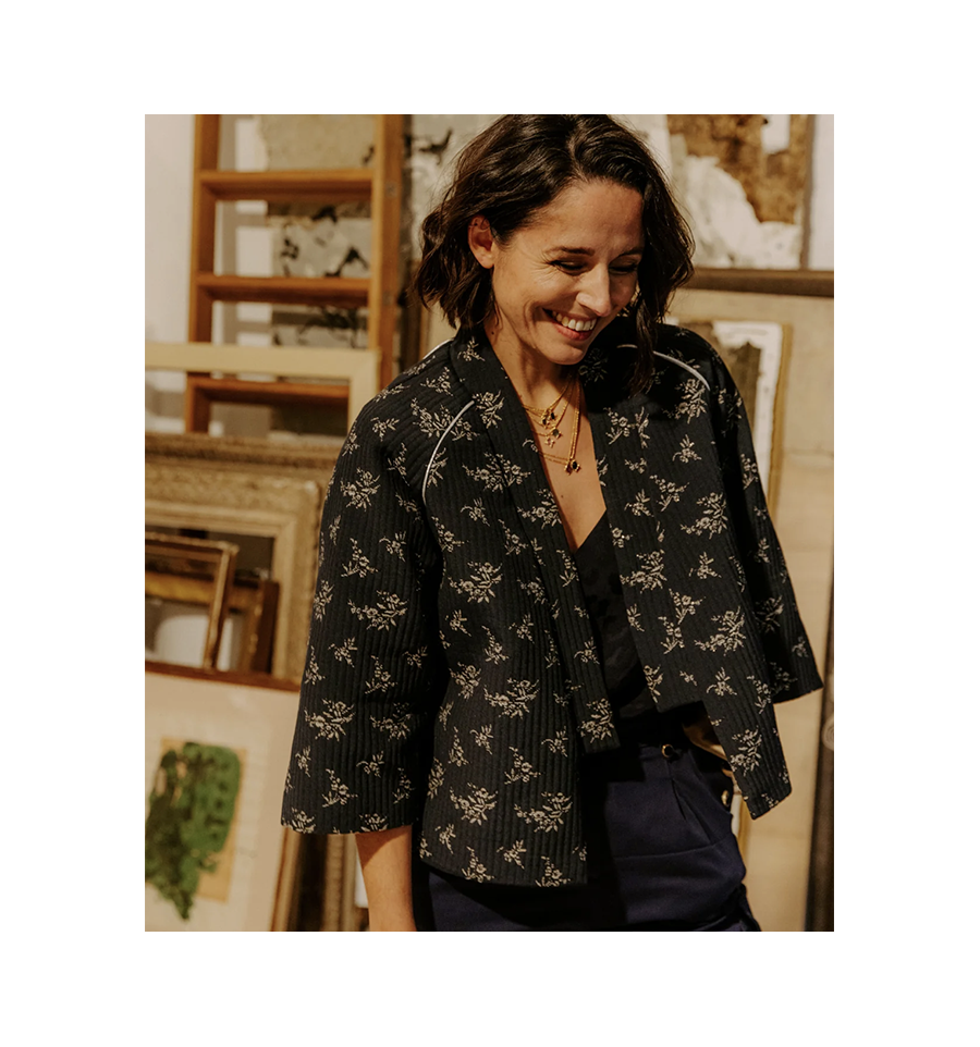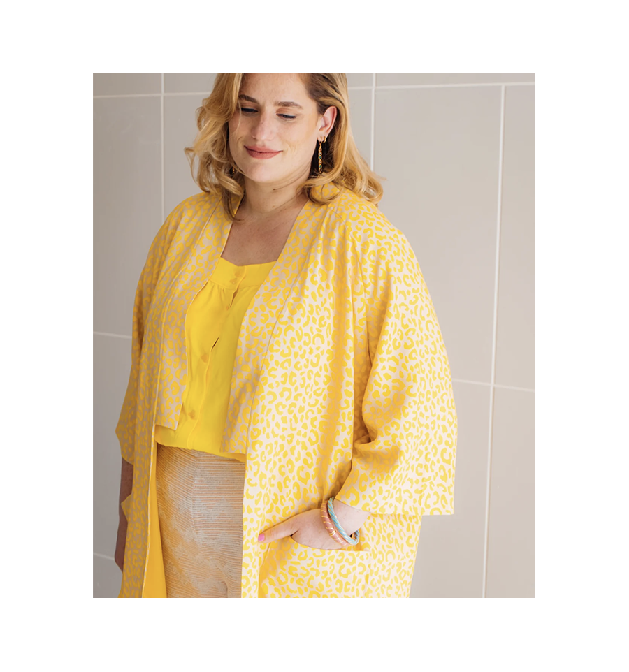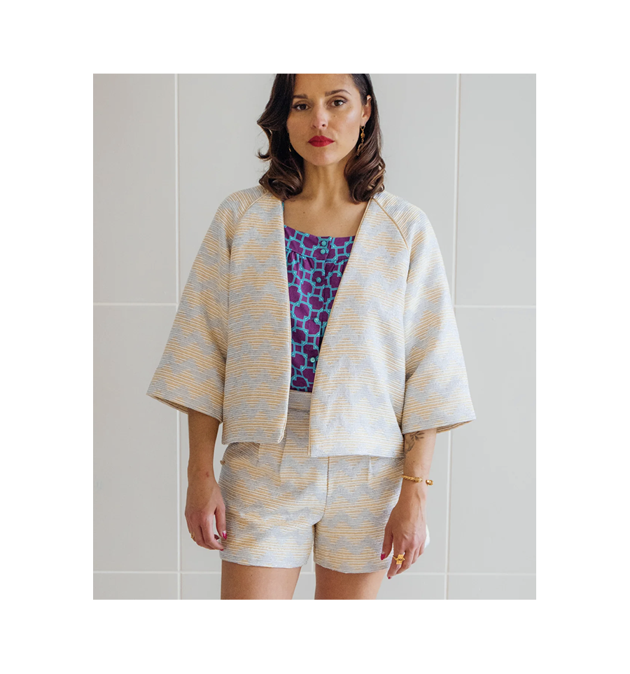 Pièce iconique du vestiaire bohème, à mi chemin entre la veste et le déshabillé, la veste Nage Libre est idéale pour se lover après la baignade ou le soir venu. Une coupe droite épurée, avec un grand col qui souligne le cou et le buste, des manches en raglan évasées et raccourcies, elle se modernise grâce au détail d'empiècement dos qui dynamise la silhouette. Disponible en version longue au dessous du genou ou en version courte qui affleure les hanches, avec ou sans la bande de col, elle se réinventera selon vos choix de tissus et vos inspirations.