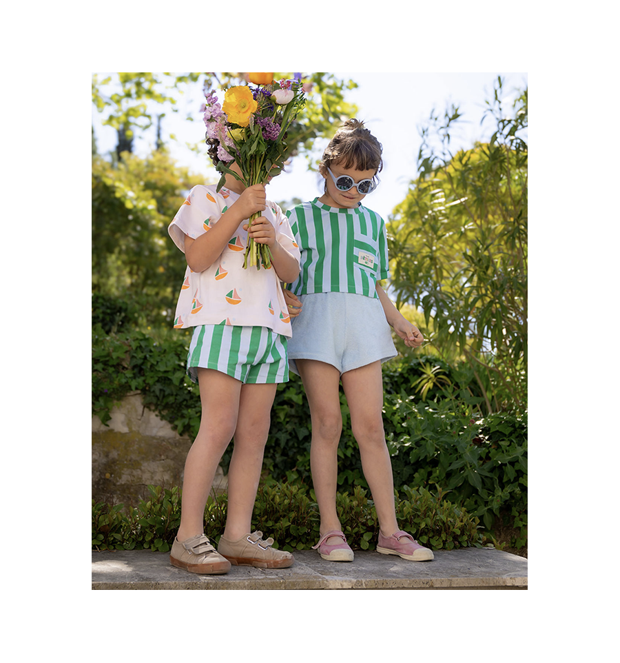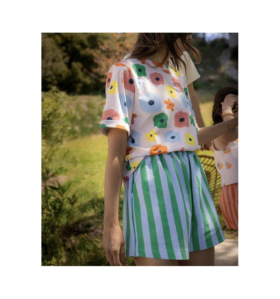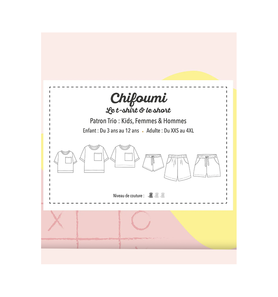 Chifoumi est un patron de t-shirt et de shorts pour toute la famille ! Dans ce patron vous trouverez 3 shorts différents : le short enfant (issu du patron Grillon), le short Femme et le short Homme. Le t-shirt quant à lui est mixte !