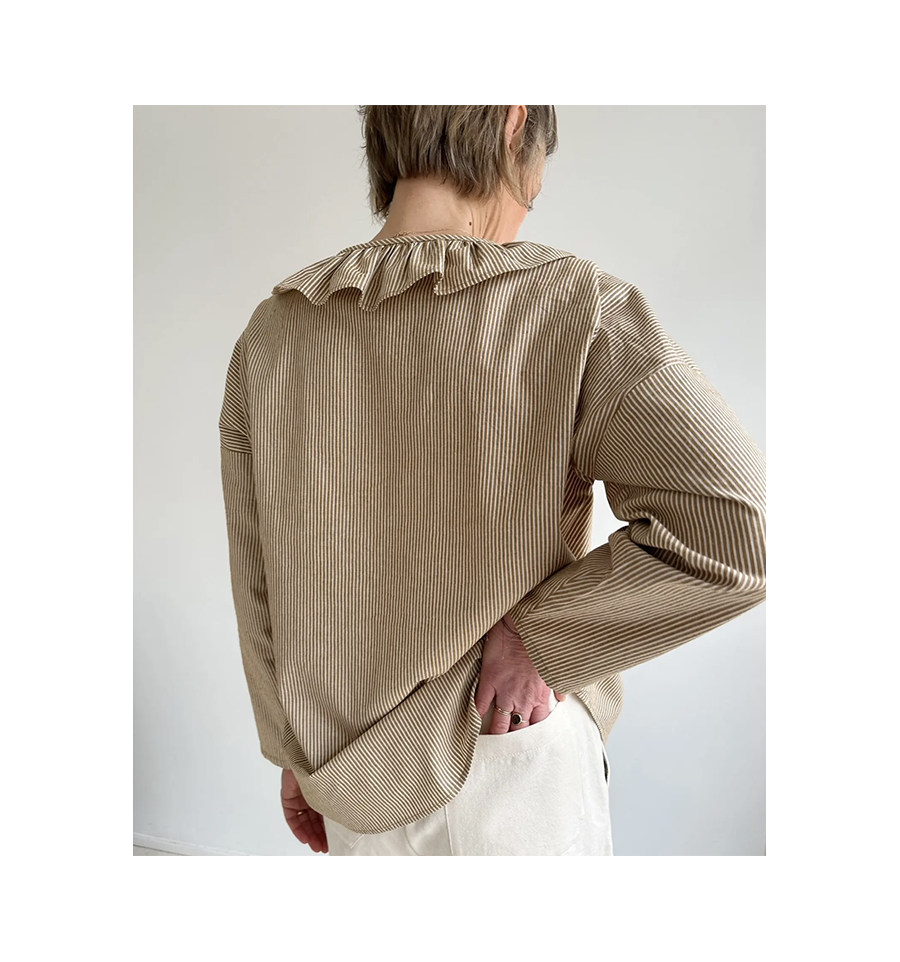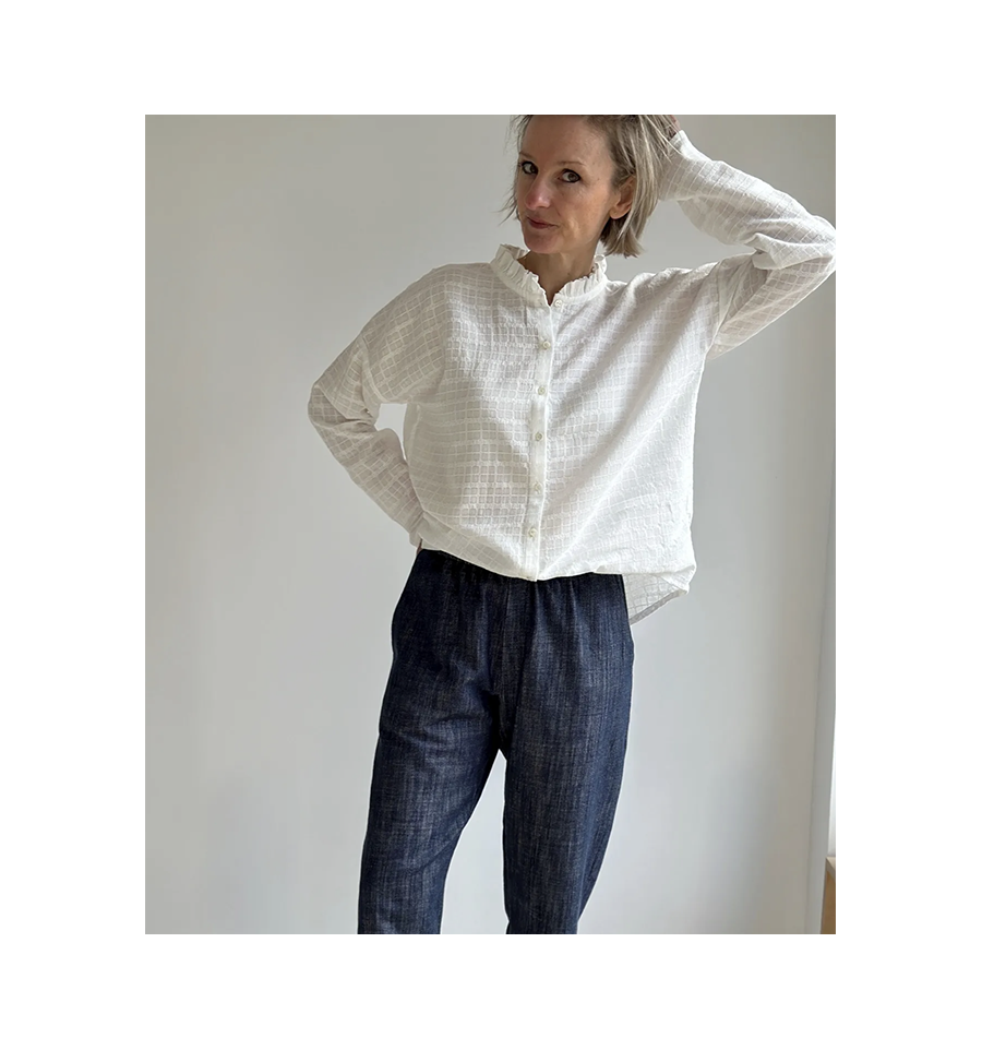 Une chemise casual chic que l’on a envie de porter au quotidien. Coupe loose, choix du boutonnage devant ou dos, col volanté ou col poulinette, poignets volantés ou non, elle sera le nouveau basique féminin de votre dressing.