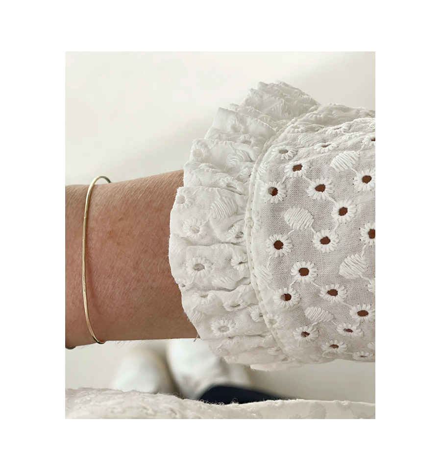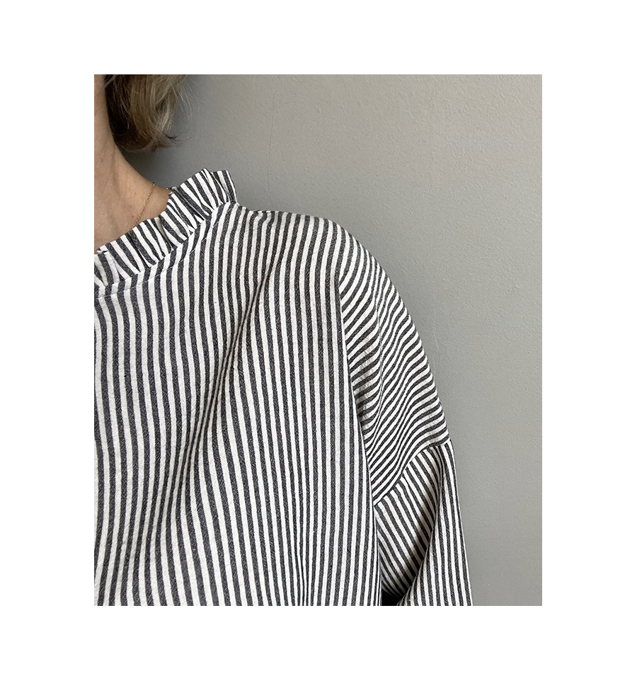 Vous apprendrez à monter des manches basses, coudre une patte de boutonnage et faire des volants.