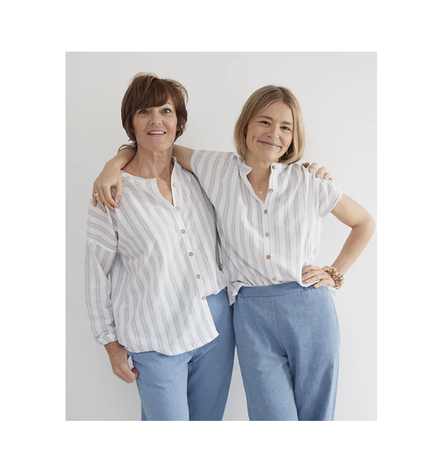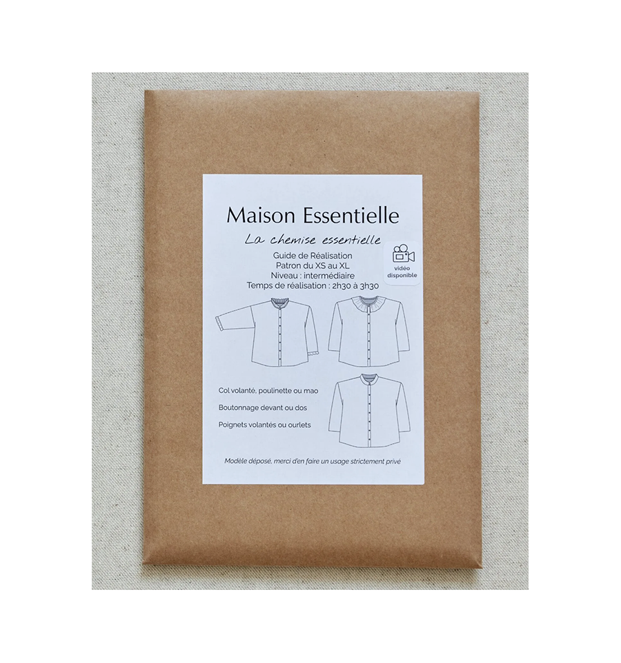 Patron papier à taille réelle de la taille XS au XL + Guide de réalisation avec les étapes de montage en image – Longueur de la chemise 59 cm à ajuster selon vos besoins