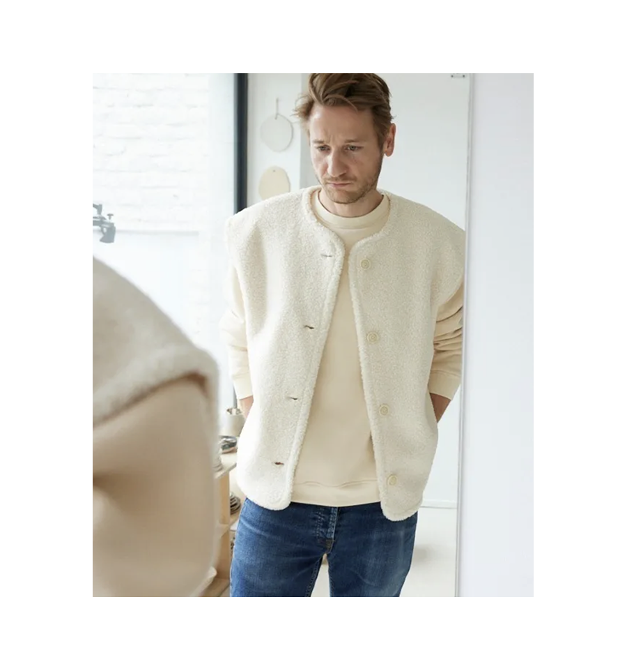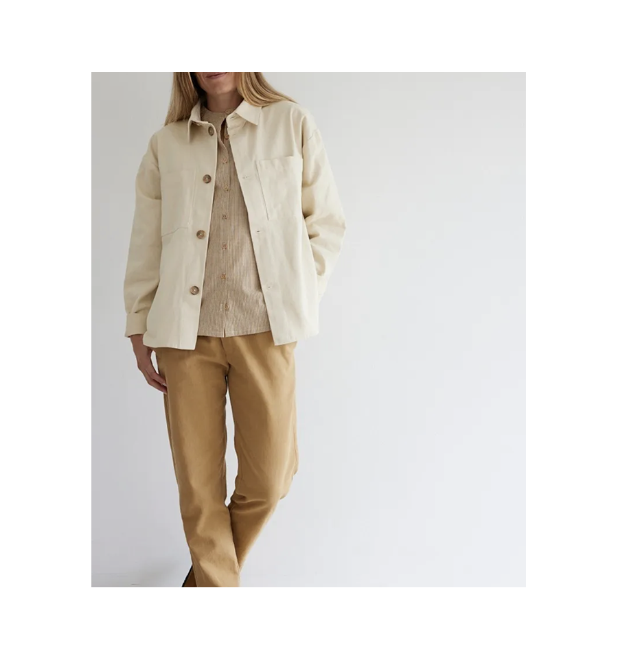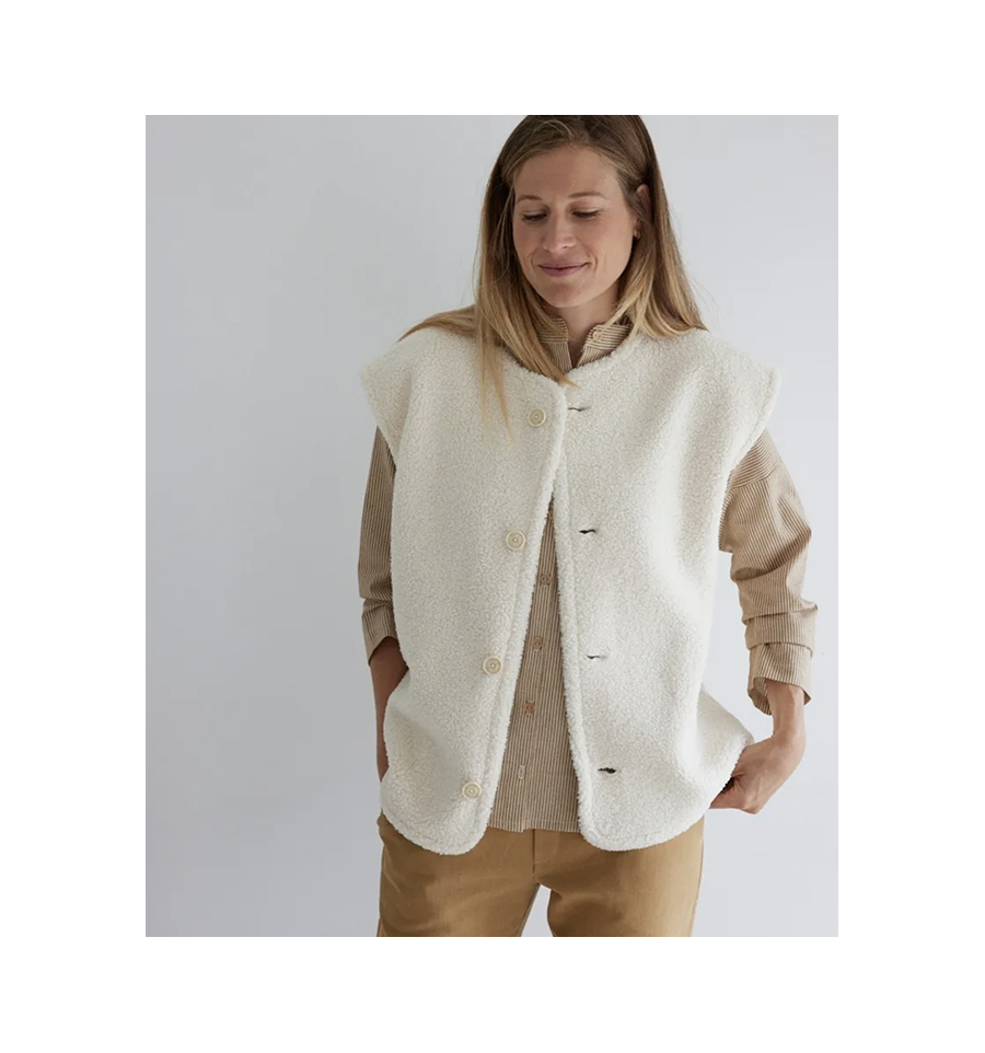 Panache est une veste qui a du panache car elle se décline dans beaucoup de versions : sans ou avec manches longues, simple ou double boutonnage, elle peut aussi se réaliser version surchemise avec un col.