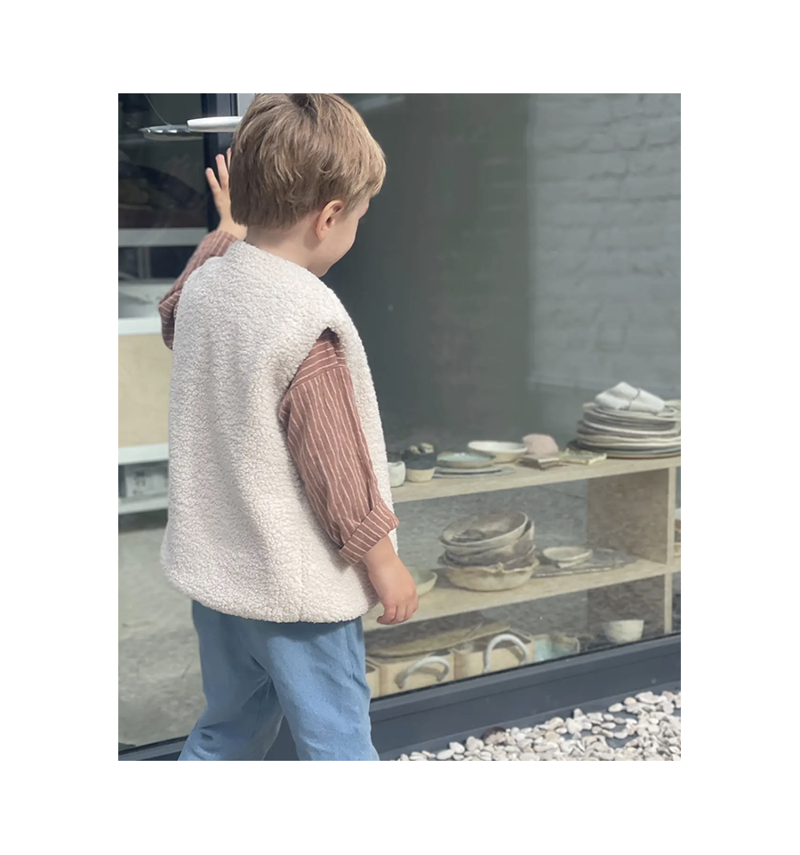 La veste nomade pour faire comme maman. Inspirée du vestiaire japonais, la veste nomade réinterprète la veste kimono dans une lecture chic et décontractée. Le modèle enfant prévoit un boutonnage à pressions et un dos avec 2 plis pour plus d’ampleur et de confort. Elle se réalise également sans soufflet et sans manche pour un esprit gilet de berger.