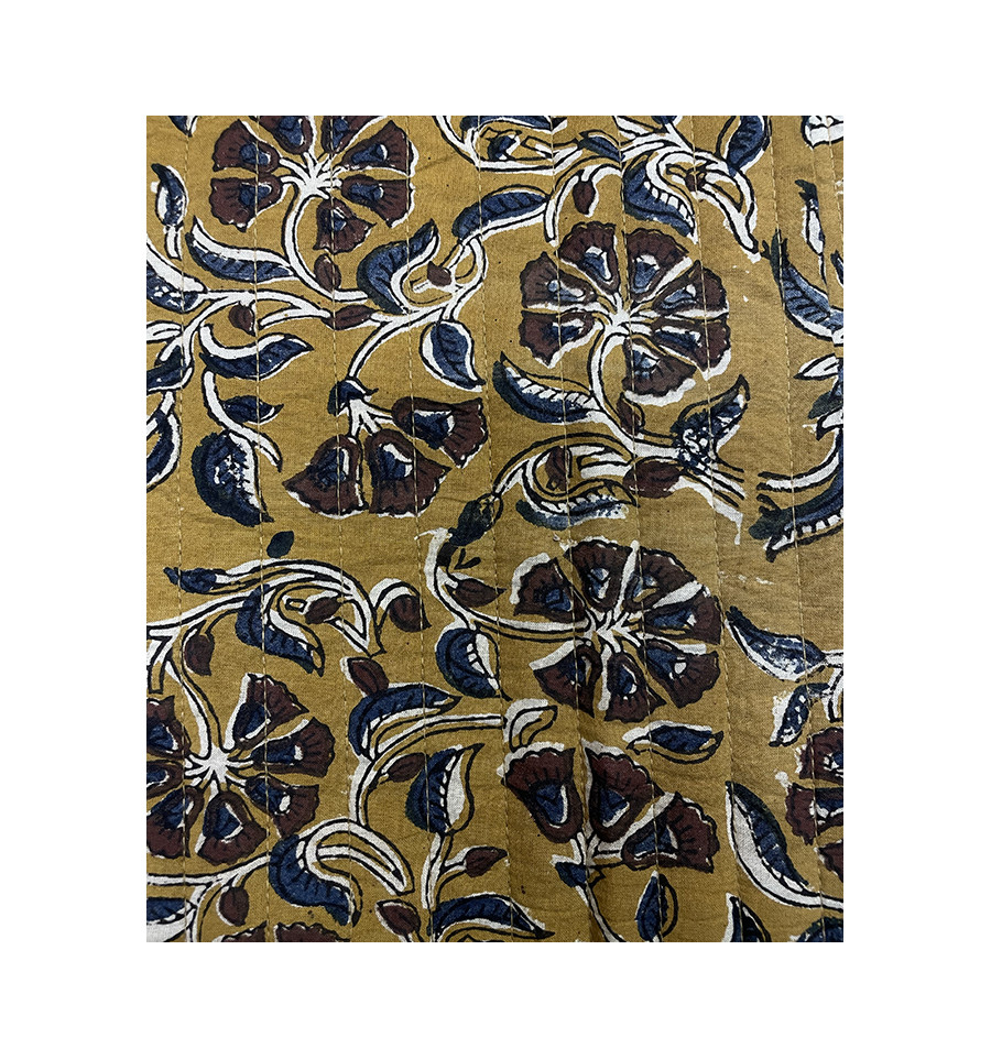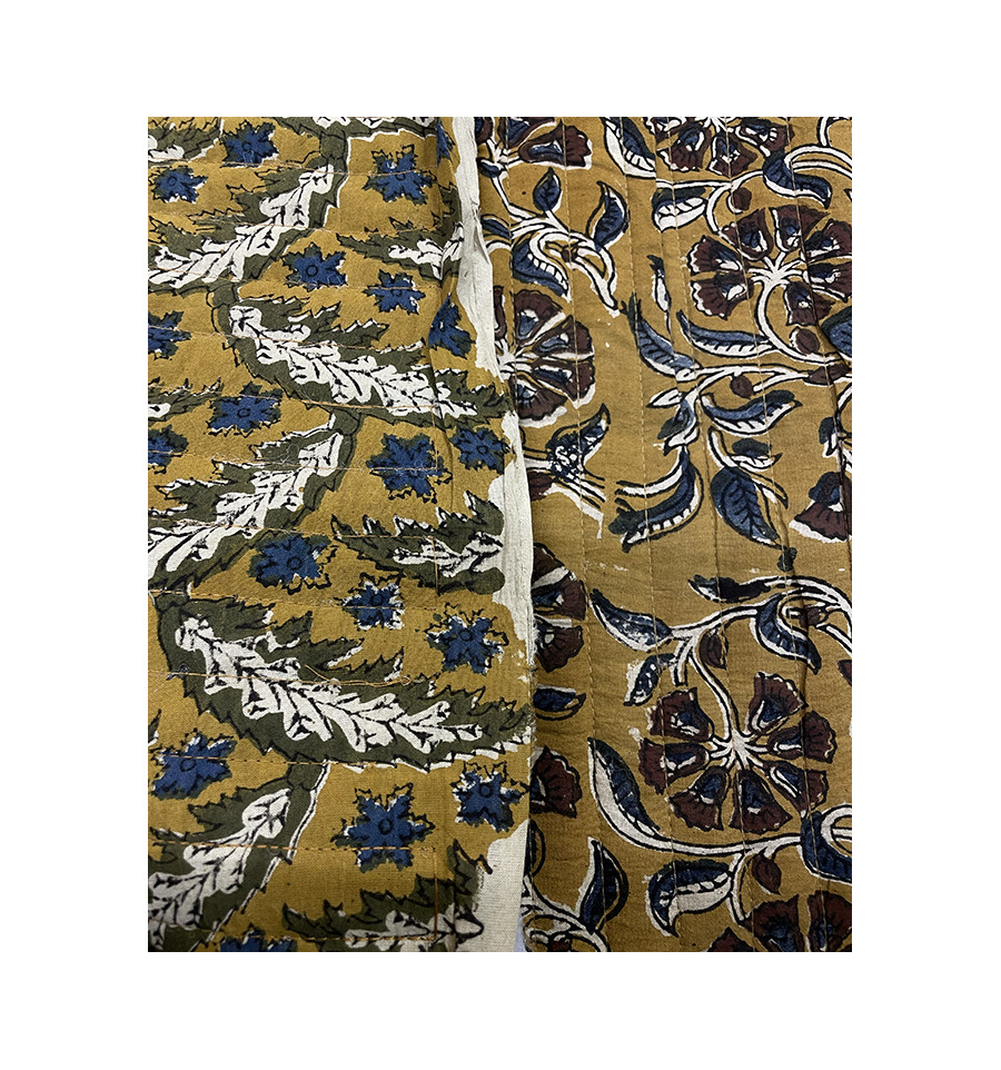 Le tissu matelassé indien est un tissu en coton léger aux motifs floraux, imprimé avec la technique traditionnelle du block print. Il est double face avec un motif différent recto et verso.