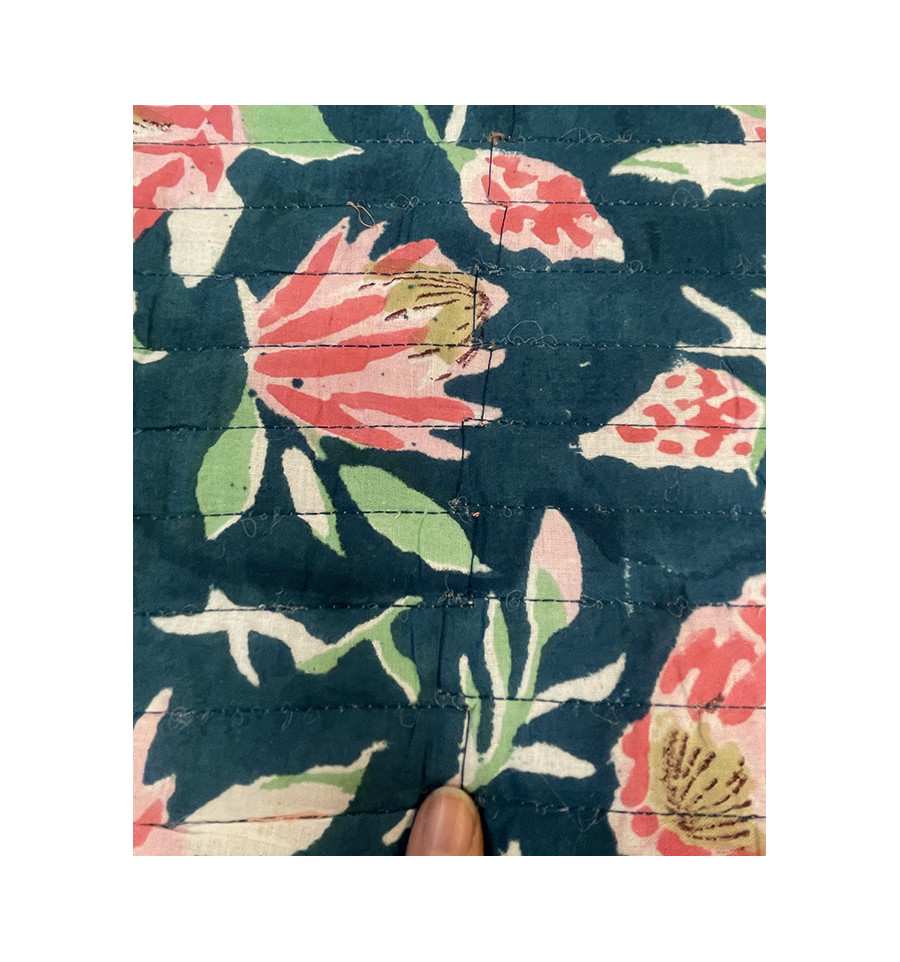 Ce tissu est imprimé et matelassé de manière artisanal. Il se peut que les motifs et matelassage ne soit pas parfait avec de petites imperfections. Mais c'est ce qui fait le charme de ce tissu.