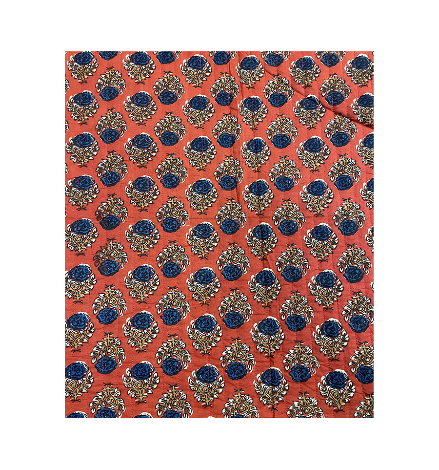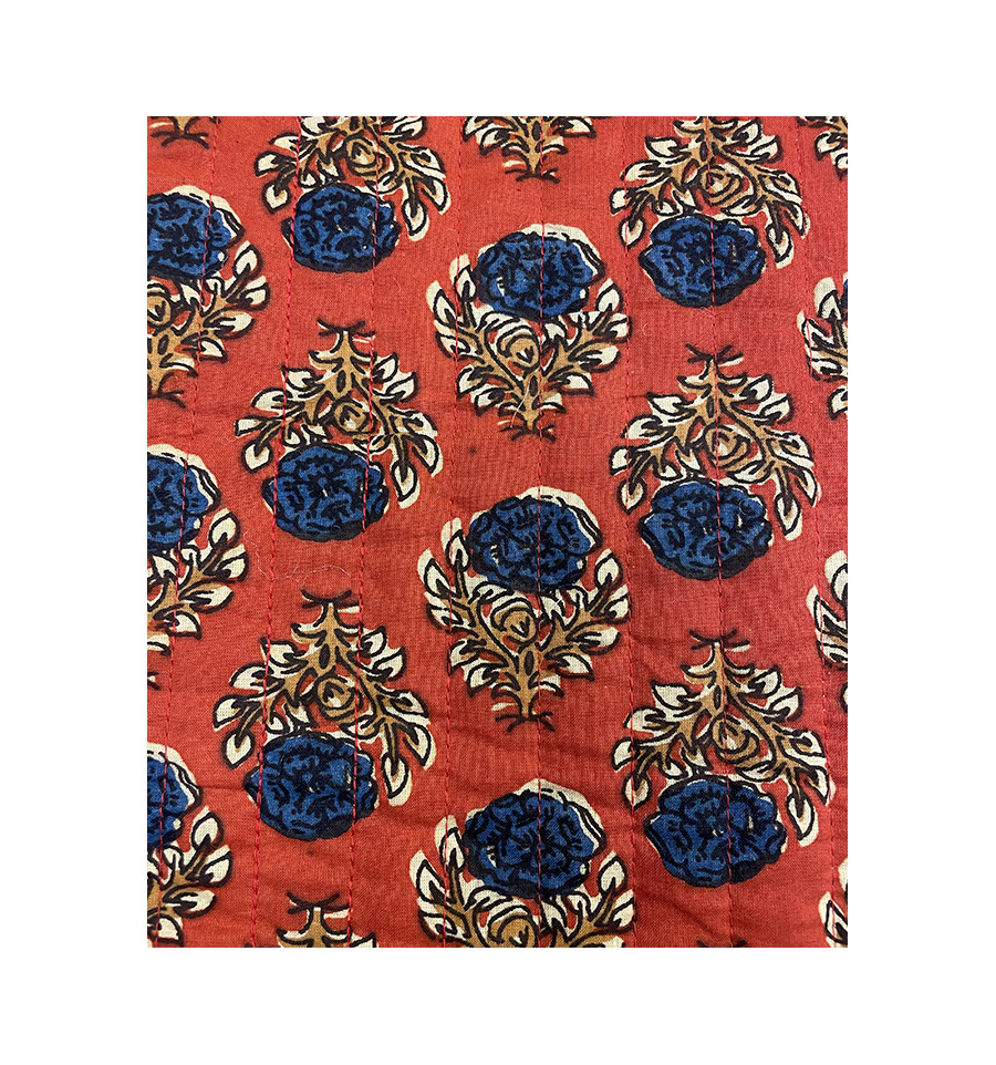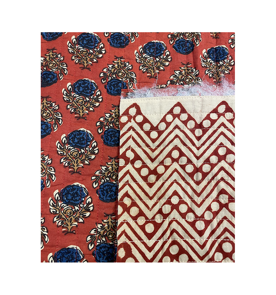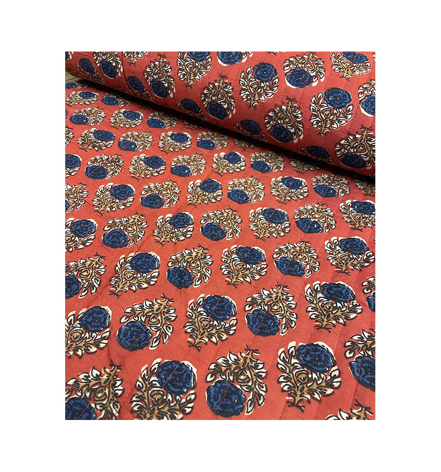 Le tissu matelassé indien est un tissu en coton léger aux motifs floraux, imprimé avec la technique traditionnelle du block print. Il est double face avec un motif différent recto et verso.