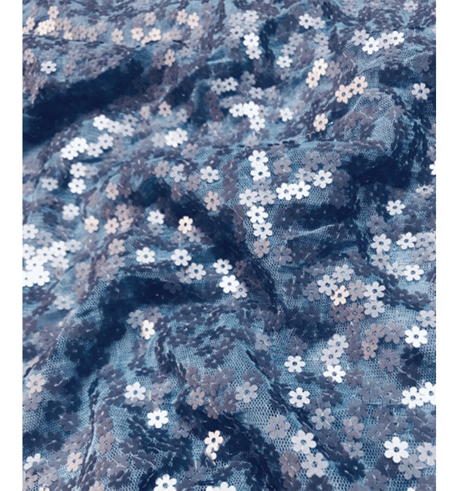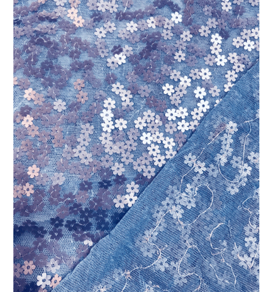 Tulle brodé petites fleurs en sequins