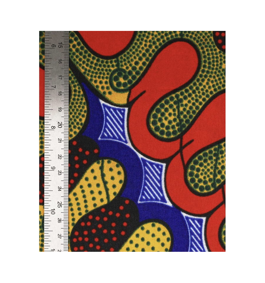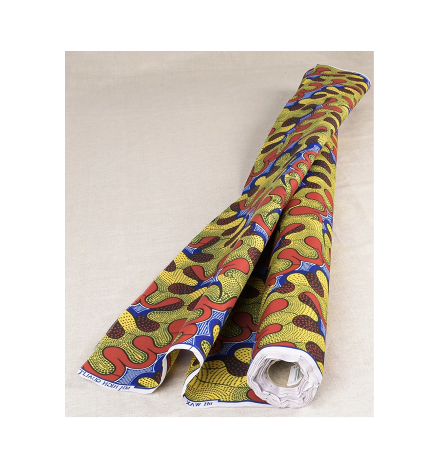 Coton Wax imprimé - Jaune Rouge Bleu